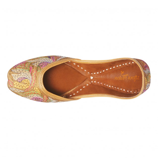 Bet you cant take your eyes off these Nude Juttis made for the spicy and stylish girls who just don’t settle for the ordinary. Simple thread work on the nude colour gives the royal feeling every time you wear them.