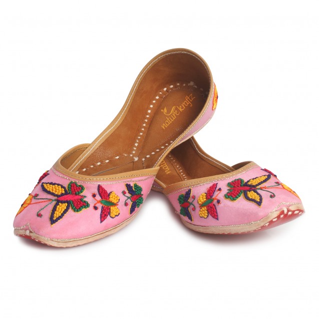 Be your best in the Floral Pink and blush like that pretty flower in the rains. Hand embroidered juttis with those butterfly thread work gives a refreshing look.
