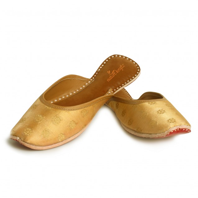 For the everyday style, since ages the golden gleam shines in every women's wardrobe. The Never so old and always in trend, the beautiful Golden jutti with silk base and self designed texture makes it a wear of the day.